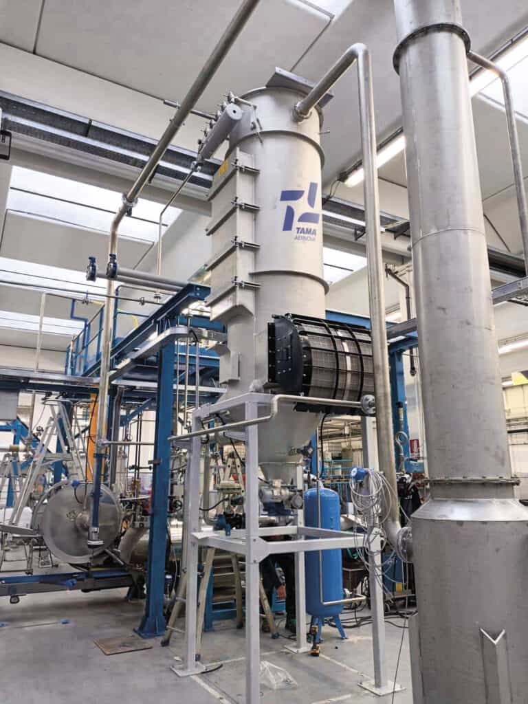 To address these challenges, Tama Aernova has engineered a cylindrical ATEX-certified stainless steel filter with a flameless venting system, specifically designed for the pneumatic conveying of plastic materials.