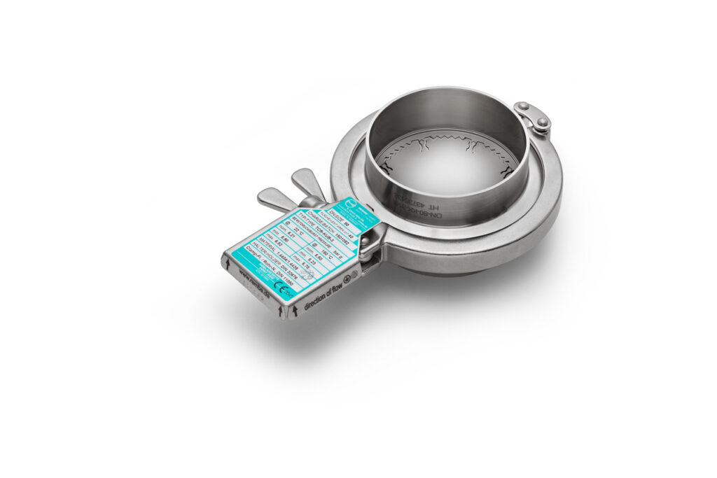 The unique design of the KUB clean is based on a two-layer structure, whereby the side facing the process has a completely smooth surface, which prevents product build-up. The integrated seal ensures the required degree of tightness for the rupture disc. It meets all hygienic design requirements (FDA and USP Class VI compliant) and is suitable for both CIP and SIP. In addition, the seals can be replaced; the rupture disc can thus be reused immediately after an inspection or cleaning.