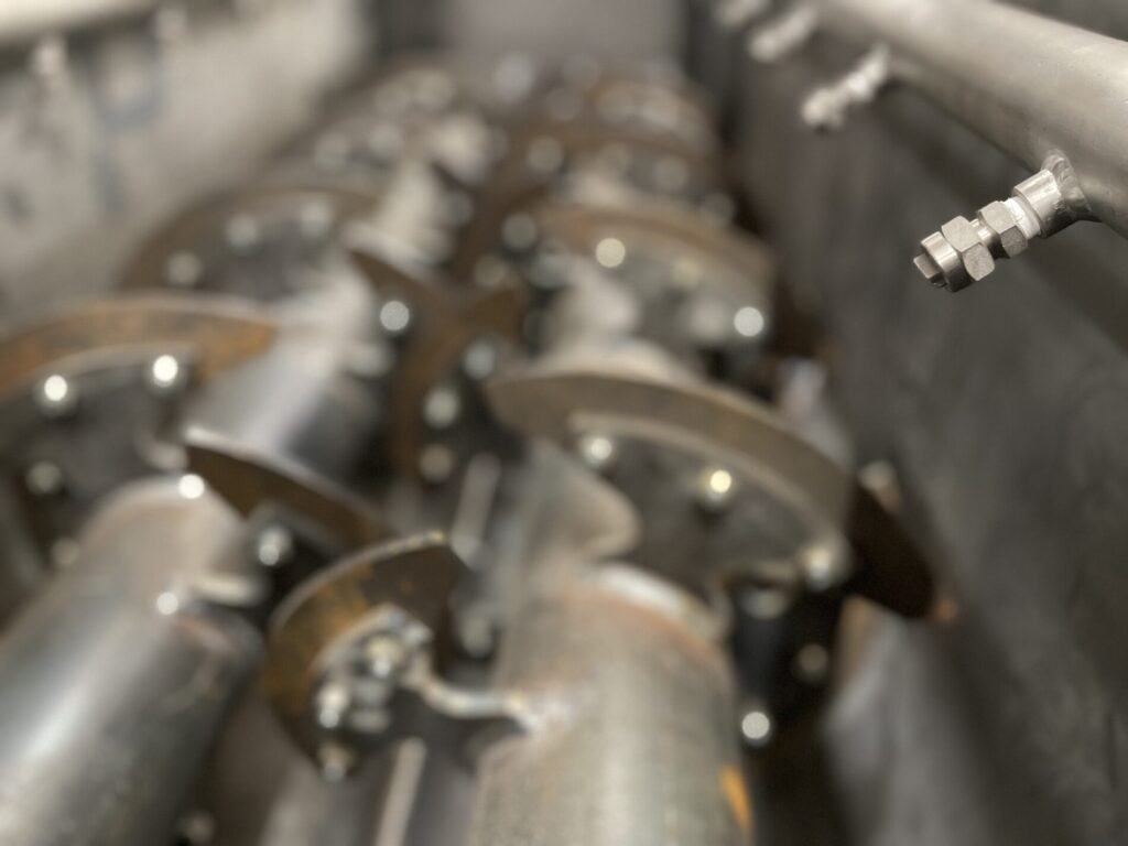 Even paddle flights can be used successfully if the design is carefully considered. Ajax’s range of LynFlow™ paddle flights were developed to provide effective mixing whilst resisting material build-up because they significantly reduce the area closest to the shaft in contrast to standard quadrant type paddles which can be very prone to clogging.