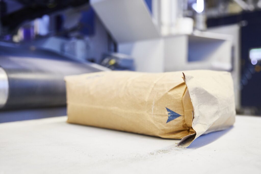 QUAT2RO® SEALcheck ends the packing line. A camera monitors bags leaving the packing line checks the sealed valves for loose product on the conveyor. When an issue with the seal is detected, the bag is diverted off the line to a separate area.