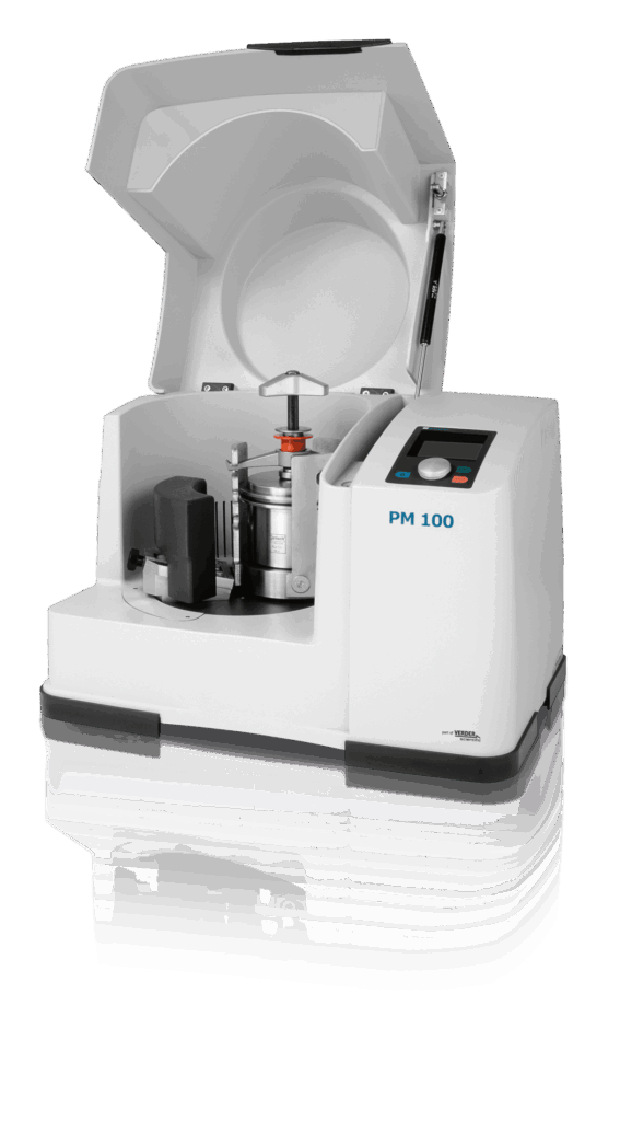 The PM 100 is a versatile benchtop planetary ball mill designed for high-performance grinding, mixing, and homogenization. It features a single grinding station with powerful centrifugal forces, achieving particle sizes down to the nanometer range. With user-friendly operation, robust safety features, and advanced options like programmable standard operation procedures and real-time monitoring, the PM 100 is perfectly suited for mechanochemical research and routine sample preparation.