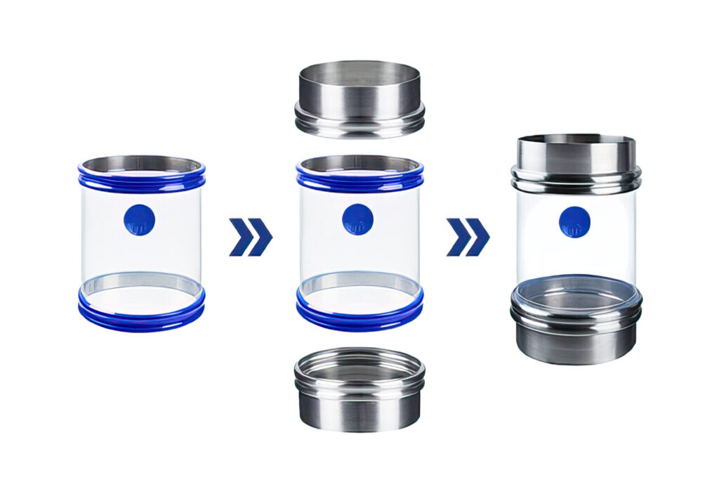 The BFM® system consists of two stainless-steel spigot adaptors welded to adjoining equipment, with a flexible connector sleeve that simply snaps into place—no clamps, tools, or gaskets required.