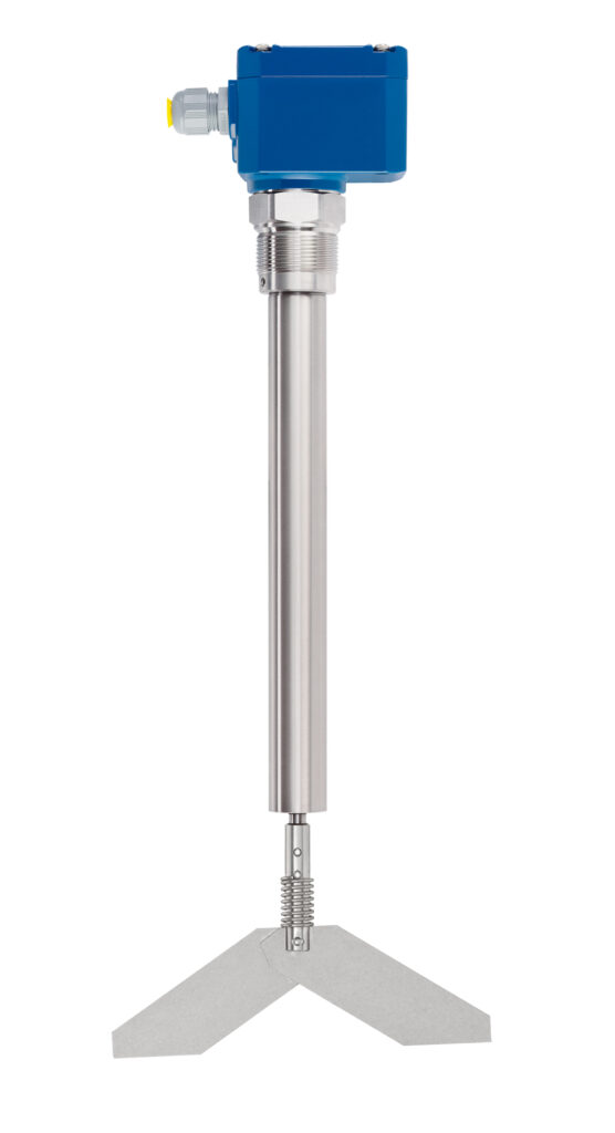 Thanks to the adjustable sensitivity, the rotary paddle could be precisely matched to the material properties of the fluidized PVC powder. Even in the presence of material build-up, the rotary paddle remains fully functional and blockages do not occur. Both the paddle and the extension tube are made of stainless steel, providing permanent protection against abrasive influences. Extension lengths of 2800 mm (≈ 110 in) were implemented in this application, with designs up to 4000 mm (≈ 157 in / 13.1 ft) available.