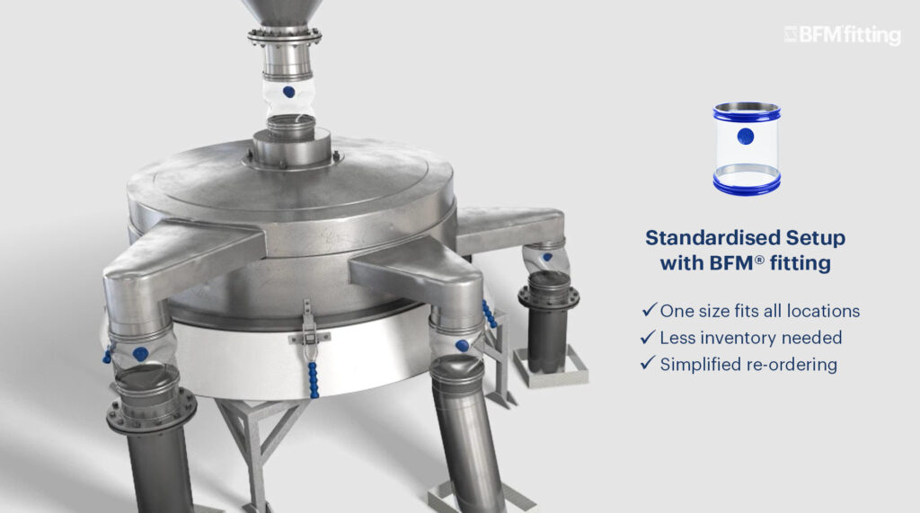 Flexible connectors—linking equipment such as sifters, mixers, hoppers, and cyclones—are essential for maintaining product flow, containing dust, and preventing contamination. However, ordering, stocking, and tracking them can quickly become a logistical headache. Variations in size, material, and assembly method often lead to overstocking, shortages, wasted time, and higher costs.
